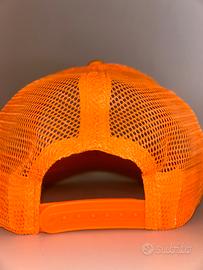 Cappello unisex arancione con retina, nuovo senza cartellino.