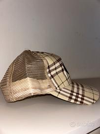 Cappello unisex fantasia burbery con retina, nuovo senza cartellino.