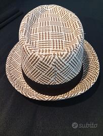 Cappello unisex. bianco/cachi, con fascia nera, misura 57, mai indossato, molto carino. Senza difetti.