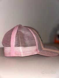 Cappello unisex rosa con fantasia a righe , nuovo senza cartellino.