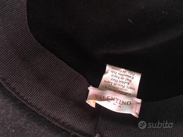 Cappello di Valentino molto particolare. A tesa larga di colore nero con fettuccia nera tono su tono. Taglia unica