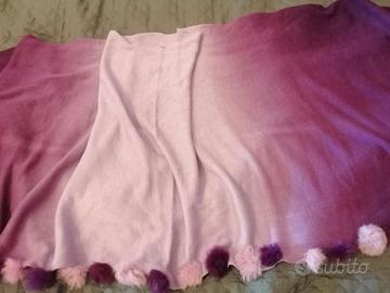 Stola/sciarpa di lana tonalità sfumata viola con applicazioni in lapin 25 euro.