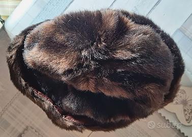 Elegante cappello vintage in pelliccia di visone color marrone scuro. Realizzato in vero visone, con pelliccia corta, folta e lucida e fodera morbida. Cappello caldo e morbido.