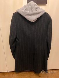 Cappottino in 100% lana, taglia 50 con inserto con cappuccio in felpa!! Il cappuccio,all’occorrenza, si puó togliere e rimane un classico!!