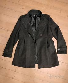 Cappottino corto grigio scuro. Indica taglia XL ma è sicuramente taglia da ragazza. Le misure spalla-spalla 40 cm; spalla-orlo inferiore 78 cm; manica 63 cm. Made in Italy. Ideale anche per donna.