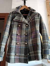 Cappottino corto/giacca usata poco, taglia s (veste però più stretta, motivo per cui la vendo) c'è un piccolo filo tirato che si vede nella foto