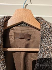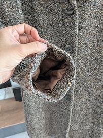 Cappottino da donna marrone melange in lana, con bottoni e tasche laterali, interno in raso marrone.