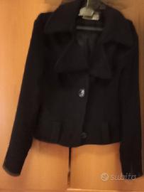 cappottino donna nero taglia 38/40,marca rainbow collection,tessuto tipico dei cappotti lana dura,passanti per inserire la cintura,la sua si è persa ma ne regalo una da metterci