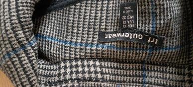 a scacchi grigio/nero con linee azzurre. Tessuto esterno con alta percentuale di lana. Sfoderato, con tessuto interno caldo e confortevole. Tasche comode.