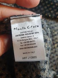 Cappottino in maglia nero con jaquard grigio e oro, tg 1 (40/42) bordi in taglio vivo.