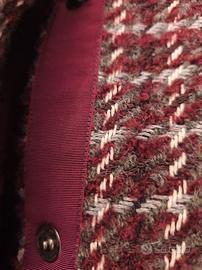 Cappottino al ginocchio fantasia grigio e viola con collo alto e due tasche. Taglia 41F corrisponde a 50 . Marca Luisa Viola