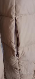 MONCLER piumino trapuntato beige da donna cappotto lungo cerniera tasche rotte