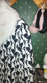 cappottino leggero taglia 40 marca BLUGIRL di Blumarine. Nuovo. mai messo. è foderato. ideale per le mezze stagioni o come soprabito elegante. colore nero - blu con disegno foche bianche.