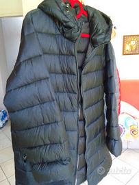 cappottino piumotto nero, con cappuccio, interno sintetico, marca Fiorella Rubino taglia italiana 37 che equivale alle 46 circa, doppia chiusura lampo