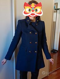 Vendo cappottino marca Zara da donna, colore blu scuro, taglia M, usato pochissimo e in ottime condizioni. Chiusura doppiopetto con bottoni dorati. Lunghezza maniche 62 cm, larghezza spalle 39 cm, lunghezza totale 79 cm.