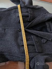 In ottime condizioni tg 50 colore grigio scuro, maniche foderate, in pesante tessuto di lana