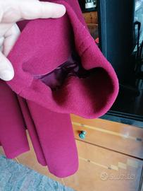 Cappotto a mantella chiusura con un bottone nel colletto. Color bordeaux. In ottime condizioni.