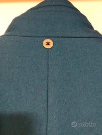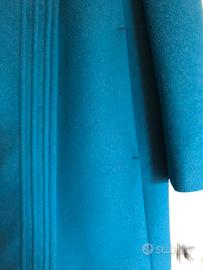 Cappotto corto in panno di lana color turchese interno foderato nuovo di marca Pennyblack lunghezza cm 83 chiusura interna con bottoni a pressione. Taglia 42