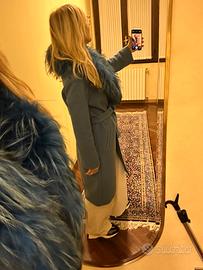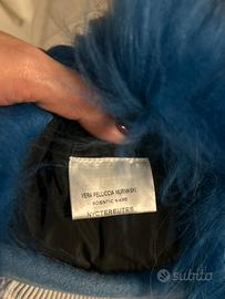 Cappotto azzurro glamour, taglia 44, collo in pelliccia Murmasky , nuovo con cartellino, mai indossato .