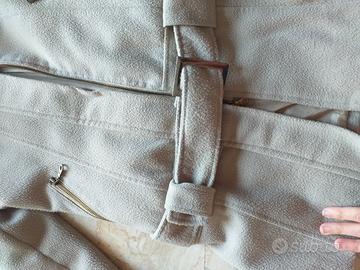 meraviglioso cappottino beige con inserto sul girovita . cerniera. la fodera all'interno é un po' scucita ma si cuce facilmente