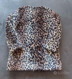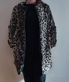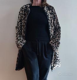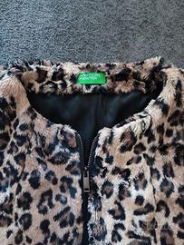 Cappotto Benetton in eco pelliccia panterata con cerniera frontale e tasche. Taglia 46. Spalle 42 cm, ascelle 50, braccio 63, lunghezza 82. Caldo, leggero, comodo. Come nuovo.