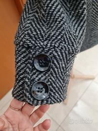 Vestibilità comoda e perfetta, inoltre per la composizione delle fibre è molto caldo. Condizioni eccellenti, bottoni unici e particolari per un effetto marmorizzato, tasche verticali profonde. Taglia e lunghezza media tweed bianco e nero. Per ulteriori info a disponibile.