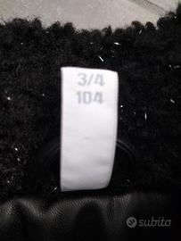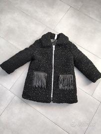 Cappotto bimba taglia 3/4 anni in tessuto bouclé colore nero con dettagli argento e tasche con frange e strass.