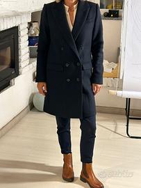 Cappotto blu doppiopetto da donna. Prezzo trattabile. Indossato una volta. Totalmente foderato all'interno La Redoute Collection. Lanificio italiano. Taglia 40. Misure: lunghezza 86cm (spalla-bordo inferiore); larghezza 45cm; lunghezza manica 61cm