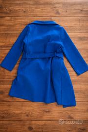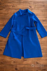 Vendo elegante cappotto color blu elettrico, modello vestaglia senza bottoni, con chiusura tramite cintura in vita. Linea pulita e moderna, perfetto per la mezza stagione e l’inverno.