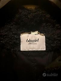 Raffinato cappotto Blugirl Blumarine in lana bouclé nero, realizzato in Italia.