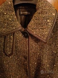 cappotto manica 3/4 in tessuto bouclé, marrone, profilato in raso . È un capo molto particolare e raffinato.