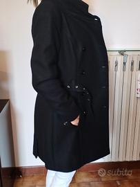 Cappotto nero donna tg 42-44(i bottoni si possono spostare cucendo per allargare e stringere.) lana e sintetico, vedere etichetta, usato pochissimo causa cambio taglia.
