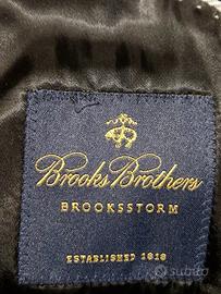 Cappotto Brooks Brothers originale, linea "BrooksStorm", color grigio antracite. Il capo è realizzato con il pregiato tessuto Storm System® di Loro Piana (100% Lana), prodotto in Italia. Questa tecnologia speciale rende il tessuto resistente all'acqua e al vento senza sacrificare la morbidezza e la traspirabilità naturali della lana vergine. Caratteristiche principali: - Marca: Brooks Brothers - Tessuto: 100% Lana Loro Piana (Made in Italy) - Colore: Grigio scuro / Antracite - Modello: Classico a tre bottoni con tasche laterali a filetto e spacco centrale posteriore - Condizioni: Ottime, indossato pochissimo e tenuto con estrema cura. - Taglia: spalle 45 cm; lunghezza: 98 cm; circonferenza 96 cm chiuso; maniche: 58 cm