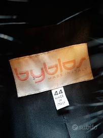 Vendo cappotto Byblos in panno nero con collo e polsi in volpe nero, con due tasconi e frange sul davanti, prezzo trattabile