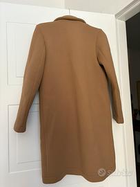 Cappotto color cammello, dal taglio dritto e minimal, perfetto per l’autunno e l’inverno.