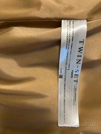 Vendo cappotto in lana pettinata di twuinset taglia L Lunghezza da spalla a fondo cm. 95 Larghezza da ascella a ascella cm.47 Con bottoni sul davanti.