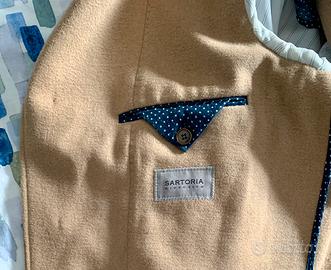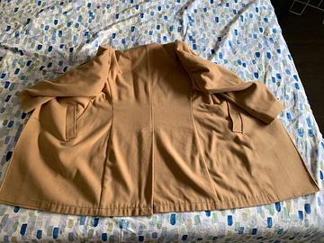 Cappotto da uomo colore cammello, taglia 46. Modello classico tre bottoni leggermente avvitato. Ottime condizioni, sfoderato ma con profili in fodera lungo tutte le cuciture.