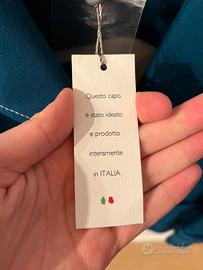 Cappotto firmato 'Camomilla Italia' in una tonalità di blu petrolio. Il capo è nuovo, mai indossato e con cartellino originale ancora attaccato. Taglia L
