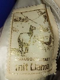 Cappotto lungo fino ai piedi tessuto pregiato , interno foderato, colorr panna, taglia 42-44 , confezionato in sartoria, corpetto con bottoni in madreperla usato una sola volta per cerimonia . Etichetta interna Luxus Qualitaet mit Llama