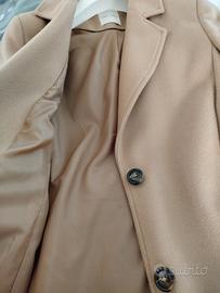Cappotto colore cammello marca take two con tasche, infiancato , completamente foderato, con spacco , lunghezza 107 cm . Taglia 42.