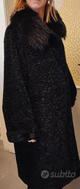 Confezione tessuto simil persiano tinto nero con mezzo collo di volpe argentata tinta nera.