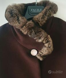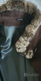 Cappotto marrone in lana (taglia IT 44). Collo in morbidissima pelliccia di vero cincillà. Misura spalle 40 cm, lunghezza 103 cm. In ottime condizioni.