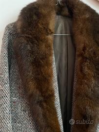 Cappotto Montgomery corto con collo in vera pelliccia marrone. Chiusura con bottoni e tasche frontali.