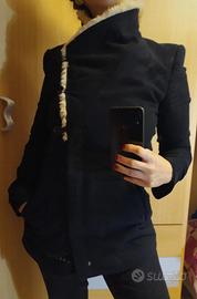 Cappotto in panno con collo in ecopelliccia che si può portare in due modi come si vede in foto.