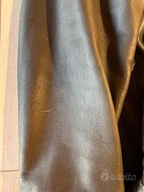 Vendo cappotto da uomo in pelle marrone marca Conbipel taglia 54. Buone condizioni, leggeri segni di usura sui polsini e sulla parte anteriore come riportato in foto.