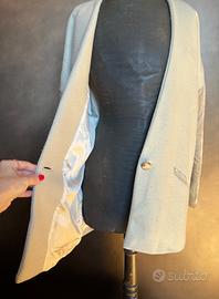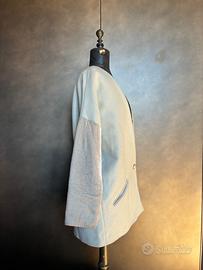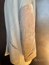 Cappotto corto, oversize, color cipria, in lana con maniche in velluto di seta. Misura S.