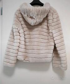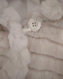 Cappotto corto di pelliccia sintetica morbida a maniche lunghe con cappuccio e un solo bottone in alto. Foderato. Colore fedele alle foto.