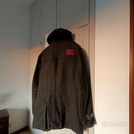 Cappotto corto uomo Superdry Japan impermeabile interno rosso esterno grigio doppia chiusura cerniera e bottoni, doppio cappuccio uno rosso ed uno sovrastante nero. esterno 70% lana Taglia XL veste una 48 max.