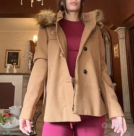 Elegante e versatile cappotto corto da donna Zara, perfetto per le stagioni fredde. Il taglio corto a campana e il colore cammello lo rendono un capo intramontabile e facile da abbinare.