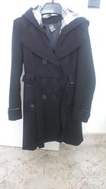 Vendo cappotto della Cuore Matto rg. S da donna nero con cappuccio foderato a scacchi bianchi e neri. Doppiopetto con cintutra e tasche laterali. Come nuovo